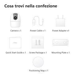 PAN 355° e TILT 80°, 1 porta LAN 100 Mbps, Wi-fi IEEE802.11 b/g/n portata fino a 50 m in campo aperto, app imou per iOS e Android,