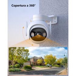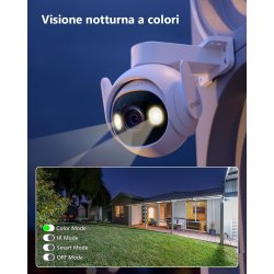 - Visione Notturna A Colori Full HD 2K & 30 Metri. Grazie alla risoluzione Full HD 2304 x 1296P, questa telecamera wifi esterno ti offre immagini nitide. Quando la telecamera da esterno wifi rileva una figura umana, i faretti si accendono automaticamente, mostrandoti un'immagine a colori. Così puoi identificare il colore dell'auto o dei vestiti di uno sconosciuto anche di notte. A proposito, i faretti possono essere spente.