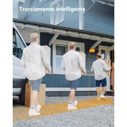 - Allarme con Sirena e Faretto & Audio Bidirezionale. Non appena vengono rilevate attività sospette, la telecamera wifi esterno invia immediatamente una notifica allo smartphone, ed attiva una luce brillante a tutto tondo e una sirena forte (fino a 110 dB). Grazie al microfono e all'altoparlante integrati, ascolti e parli con la tua famiglia in modo interattivo e tieni lontano l'intruso, anche se sei lontano.