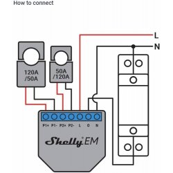 Shelly EM + 1 PINZA AMPEROMETRICA fino a 50A per misurazione consumo elettrico casa