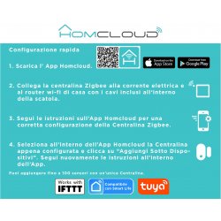 La configurazione è semplice e rapida. Scarica e installa l'App Homcloud sullo smartphone e segui le inidicazioni dopo aver pre-configurato la Centralina zigbee Homcloud.