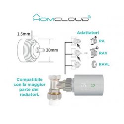 Compatibile con la maggior parte di radiatori in comemrcio. (Necessita di centralina Zigbee Homcloud per funzionare)